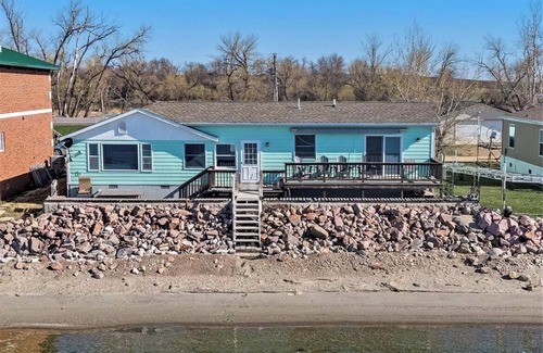 Whether you are looking for a weekend away with friends or family time this ranch style lake cabin just over an hour from Sioux Falls is perfect. There is a open floor plan kitchen and living room with incredible lake views. This property has 75 ft of sandy beach and is only knee deep for a 100 ft off shore perfect for all of the water games. Have your morning coffee under the large covered porch while watching the pelicans catch their breakfast. Relax in the claw foot tub while enjoying a view of the lake. At night grill some dinner on the propane or charcoal grill and then enjoy a bonfire in the fire pit under the stars.
